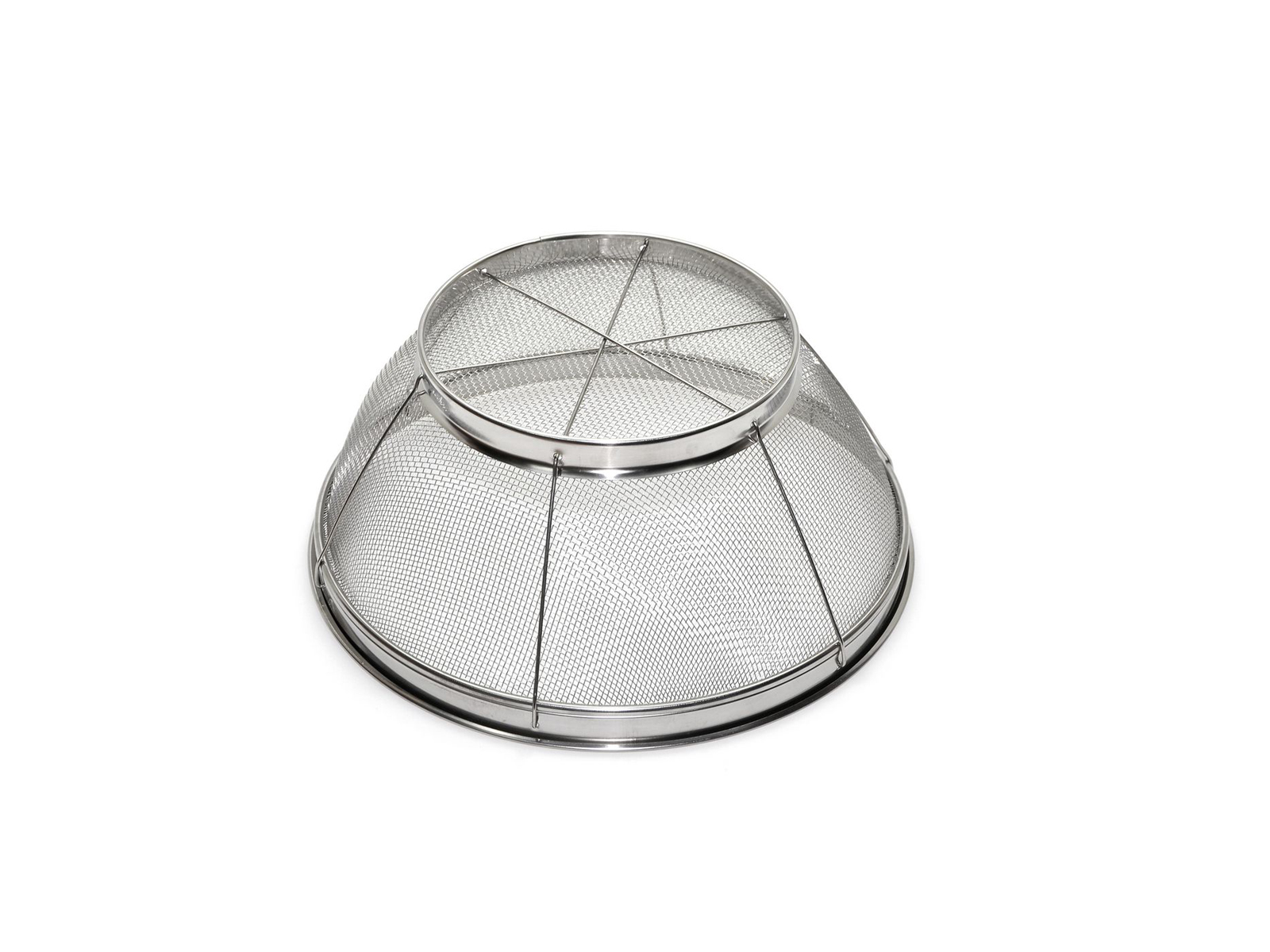 Универсальное приспособление – сито на подставке используется для мытья овощей и фруктов под краном, промывания круп и макаронных изделий. Также, как и обычное сито, эта модель идеально справляется с процеживанием компотов, морсов, чаев и других жидкостей. Сито изготовлено из нержавеющей стали с прочным каркасом и подставкой для устойчивости изделия. Материал долговечен, не портится под воздействием влаги, не образует коррозии. Такое приспособление станет хорошим помощником на кухне.