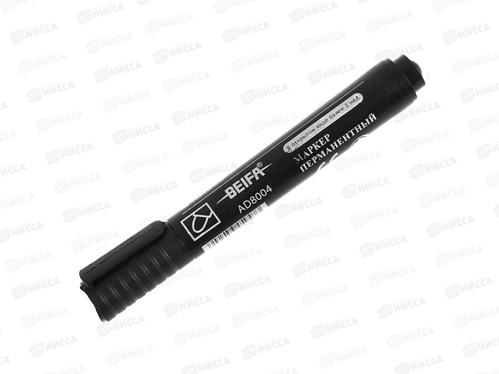 Перманентный, нестираемый маркер Beifa AD8004. Маркер заправлен перманентными нетоксичными чернилами на спиртовой основе. Нестираемые чернила пишут на любой поверхности - бумага, картон, пергамент, дерево, метал, пластик и т.д. Цвет чернил - черный. Форма наконечник - круглая, толщина - 3 мм.