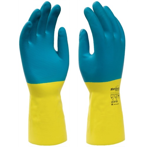 Перчатки СОЮЗ, латекс/неопрен, 0,7мм 320мм, сине-желтый 9 (L) *12/120