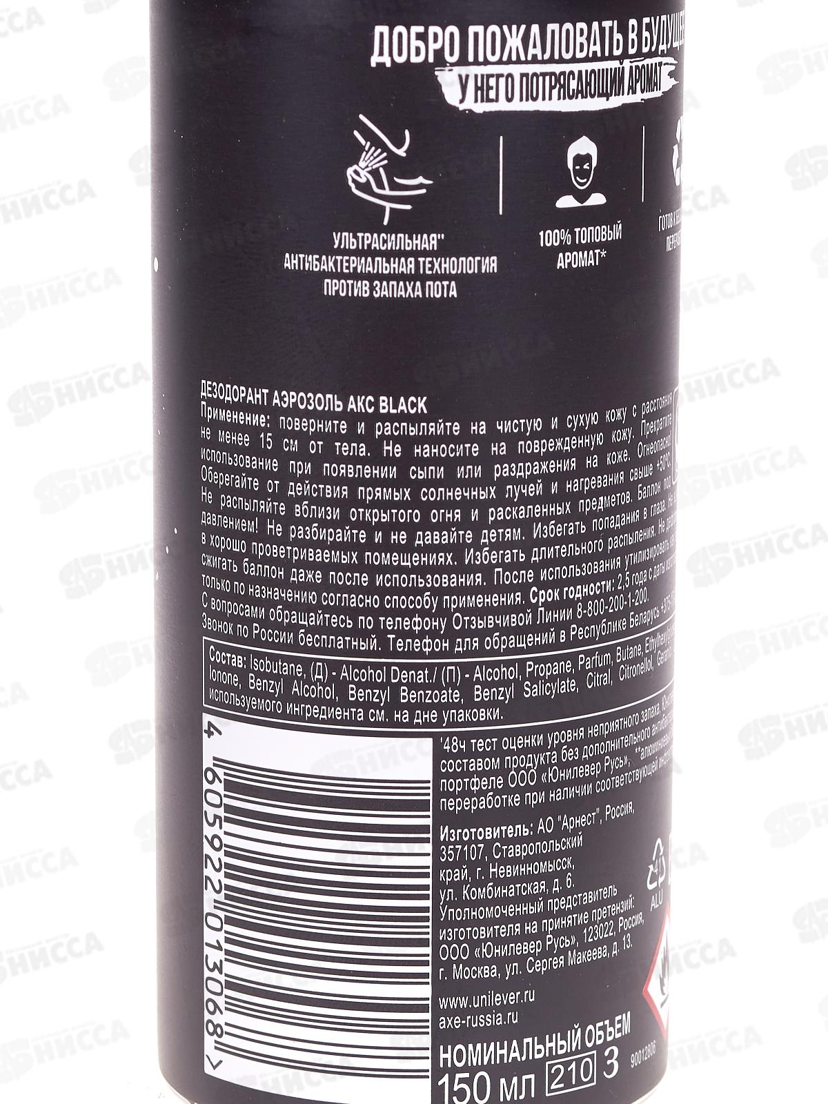 Тонкий и благородный аромат AXE BLACK, который раскрывается ясными нотами арбуза, бергамота и груши, оставляя за собой теплый чувственный шлейф древесных оттенков. Не оставляет следов и пятен на одежде и не блокирует потовые железы, придавая уверенность в себе на весь день, каждый день и в любой ситуации.