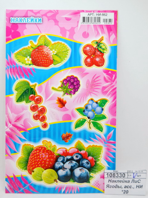 Наклейка ЛиС Ягоды, в ассортименте, НИ *20