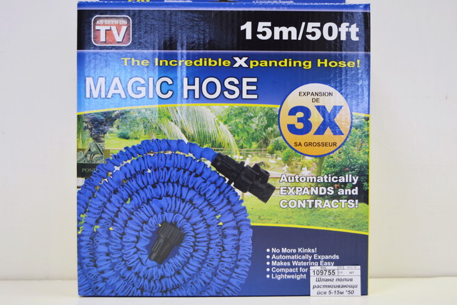 Новый чудо - шланг для полива Мэджик Hose, очень лёгкий удлиняющийся в 3 раза при подаче воды и автоматически сжимающийся по завершении, удобен в уходе за дачным участком, мытье автомобиля и хранении. В комплект входит насадка - распылитель для шланга с 7 режимами распыления. Преимущества чудо-шланга: при подаче воды автоматически увеличивается в 3 раза — автоматически уменьшается при прекращении подачи воды. Не перекручивается и никаких заломов. Прочный и долговечный. Очень лёгкий. Компактный, удобно хранить. Шланги можно соединять друг с другом. Длина 5 - 15 метров.