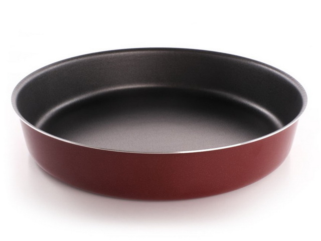 Тортница изготовлена из алюминия с внутренним антипригарным покрытием, которое не содержит PFOA, соединений свинца и кадмия. Покрытие исключает прилипание и пригорание пищи к поверхности посуды, обеспечивает легкость мытья. Высокопрочный тонкий алюминий прогревается равномерно и обеспечивает быстрое приготовление коржа, а многослойное антипригарное покрытие не дает тесту прилипать к стенкам.