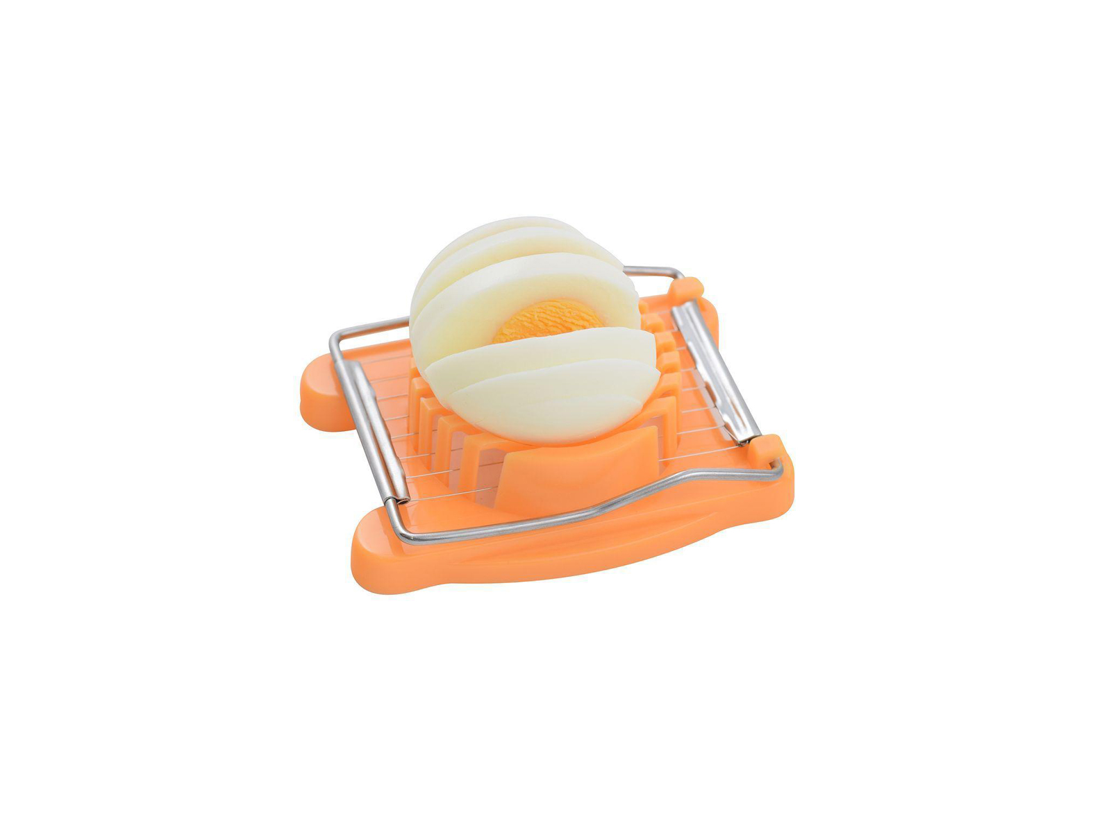 Пользоваться приспособлением очень просто. Яйцо нужно расположить на ребристой подложке вдоль или поперек, в зависимости от того, какие ломтики нужно получить. Зафиксированный продукт аккуратно разрезается металлической частью со струнами. Чтобы получить кубики, нужно разрезанное на ломтики яйцо аккуратно перевернуть поперек и снова провести режущей поверхностью. Приспособление состоит из пластмассового корпуса и режущей части из коррозионностойкой стали. После использования достаточно вымыть изделие в проточной воде с жидкими моющими средствами.