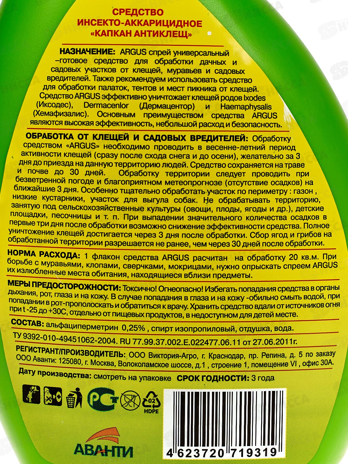 Универсальный спрей Argus Garden – готовое средство для обработки дачных и садовых участков от клещей, муравьев и садовых вредителей. Также рекомендуем использовать средство для обработки палаток, тентов и мест пикника от клещей. Средство эффективно уничт