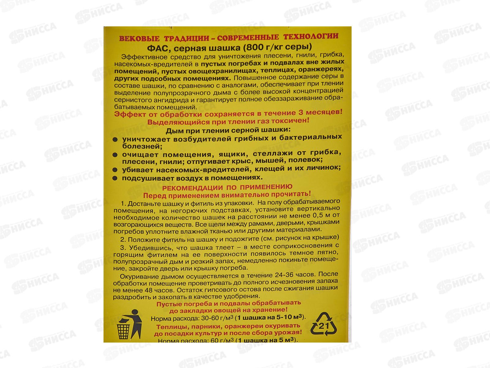 ФАС серная шашка от вредителей, грызунов и для обработки погреба 300гр *30