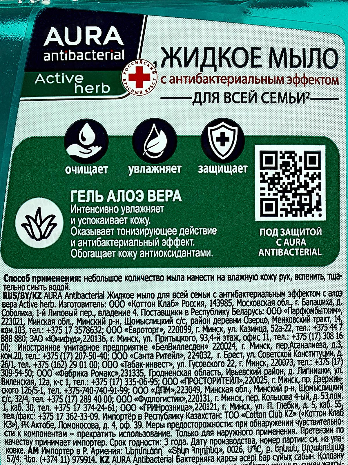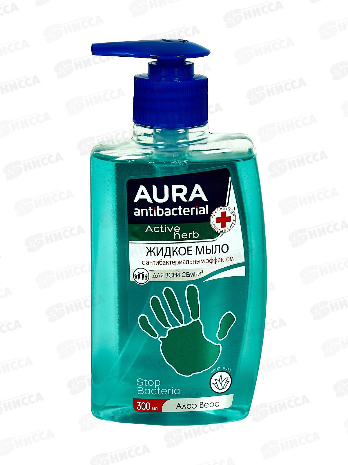 АУРА мыло жидкое 300мл антибактериальное Алоэ с дозатором *12