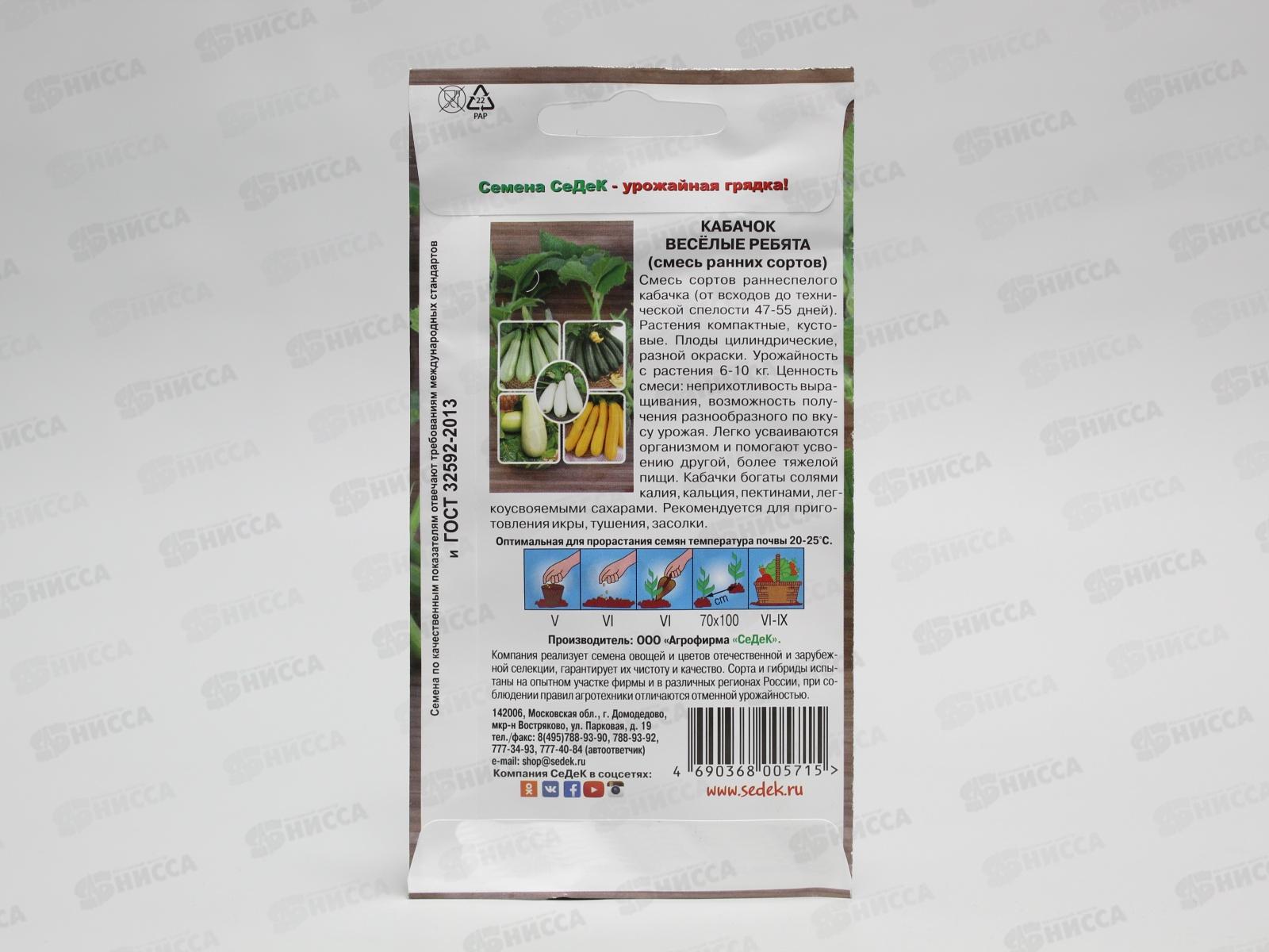 Кабачок Веселые Ребята F1смесь ранних сортов (Евро,2, 9450) *10 СеДек