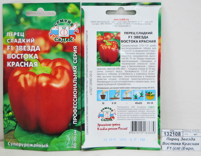Перец Звезда Востока Красный F1 (сладкий) (Евро, 0,1 1166) *5 СеДек