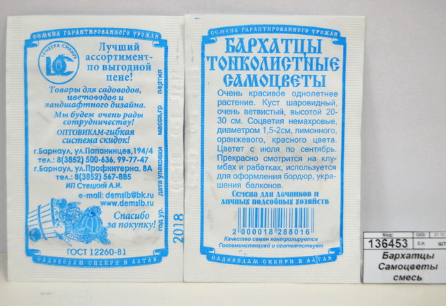 Бархатцы Самоцветы смесь тонколистовые (0,1грамм белый пакет) ДемСиб