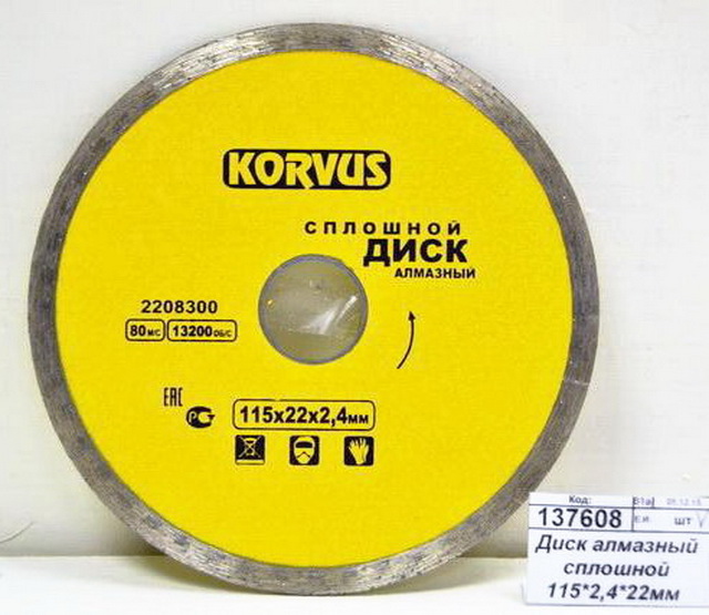 Диск алмазный сплошной 115*2,4*22мм 2208300 Л