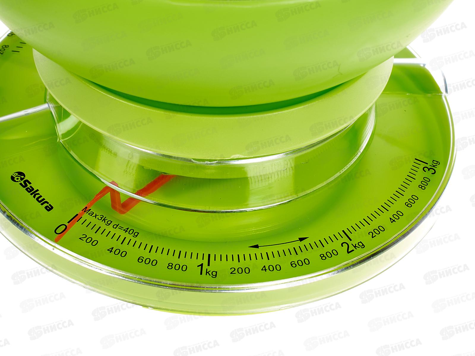 Определяйте с помощью механических кухонных весов Sakura SA-6008GR точное количество ингредиентов для новых блюд и заготовок на зиму. Благодаря надёжному механизму устройство покажет массу продуктов с незначительной погрешностью. Пластиковый корпус практичен и прочен, а отсутствие электронных деталей позволит использовать прибор в любое время, не заботясь о питании. Цена деления весов составляет 25 грамм, максимальная нагрузка — 3 килограмма.