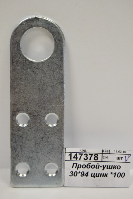 Пробой - ушко 30х94 мм, покрытие цинк, Металлист, или как еще называют данную деталь, проушина — это вид скобяных изделий, используемый как запорные петли для тросовых и амбарных замков. Чаше всего они применяются для запирания нежилых помещений — сараев, гаражей, подвалов, дачных домиков и приусадебных построек, ворот, складов и других хозяйственных помещений. Крепятся проушины непосредственно на дверную коробку и полотно.