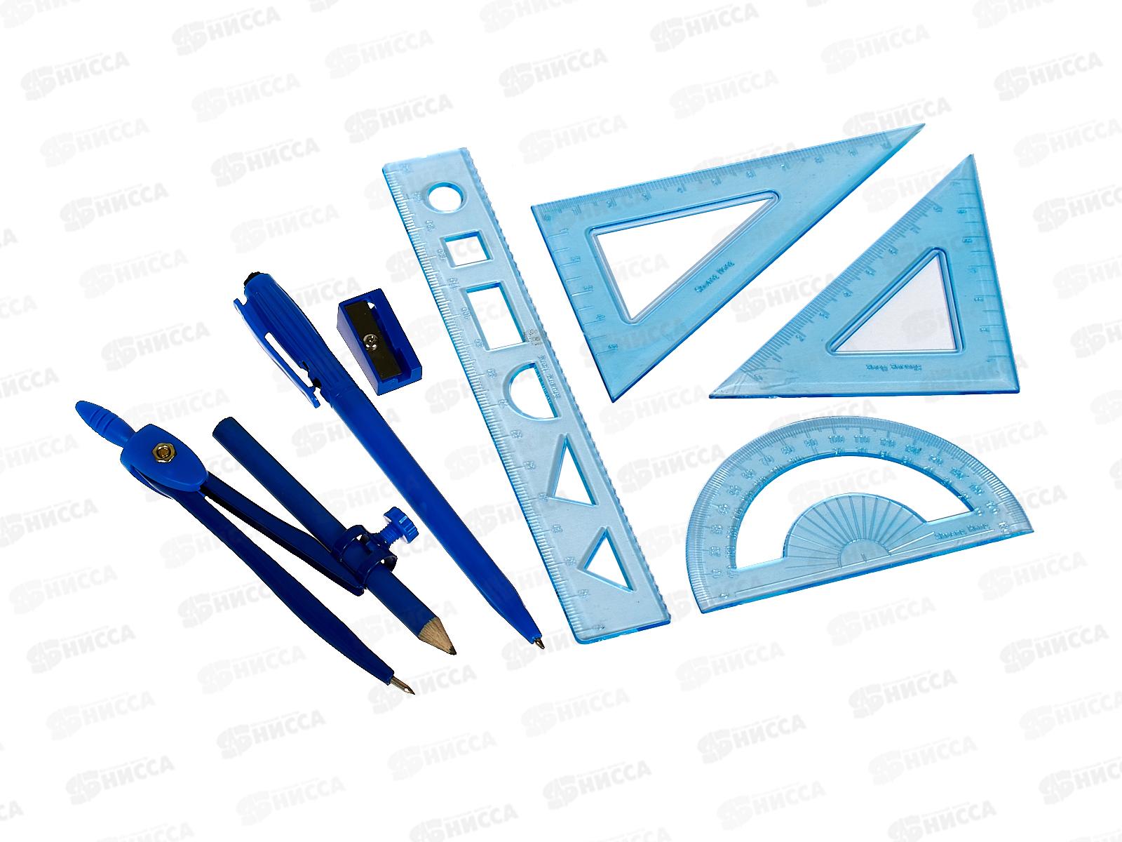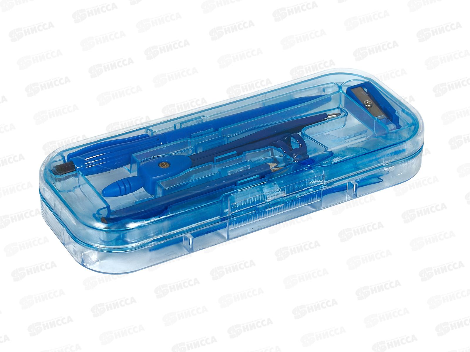 Комплектация: циркуль металлический, карандаш, ручка, точилка, линейка (15 см), транспорт