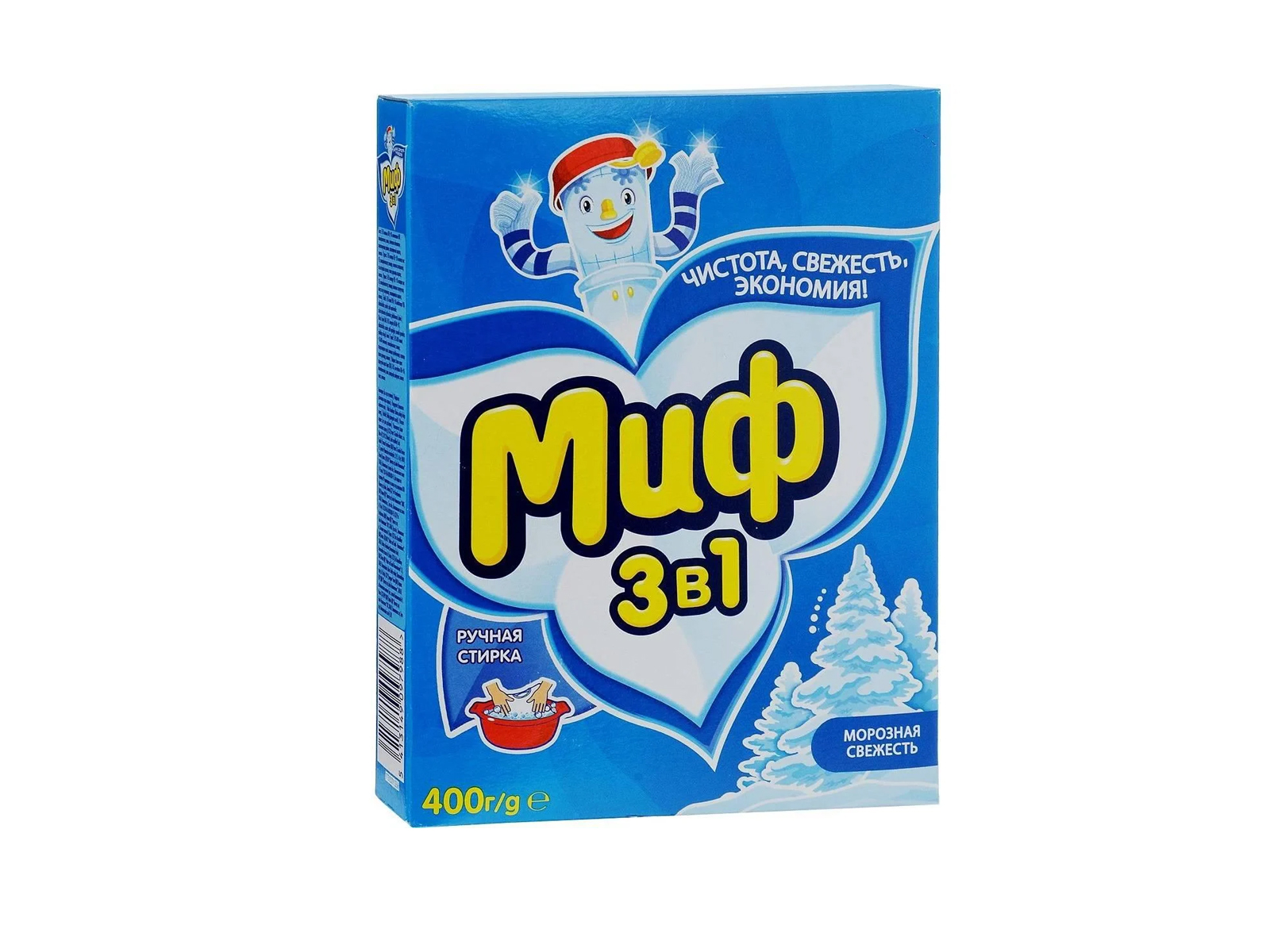Купив 1 упаковку стирального порошка Миф "Морозная свежесть", вы получаете сразу три преимущества: блестящая чистота вещей всей семьи, стойкий и приятный свежий аромат и доступная цена. Не нужно ничего делать — Миф сам отлично справится с работой. Средство для ручной стирки изделий из хлопчатобумажных, льняных, синтетических тканей и тканей из смешанных волокон (кроме шерсти и шелка).
