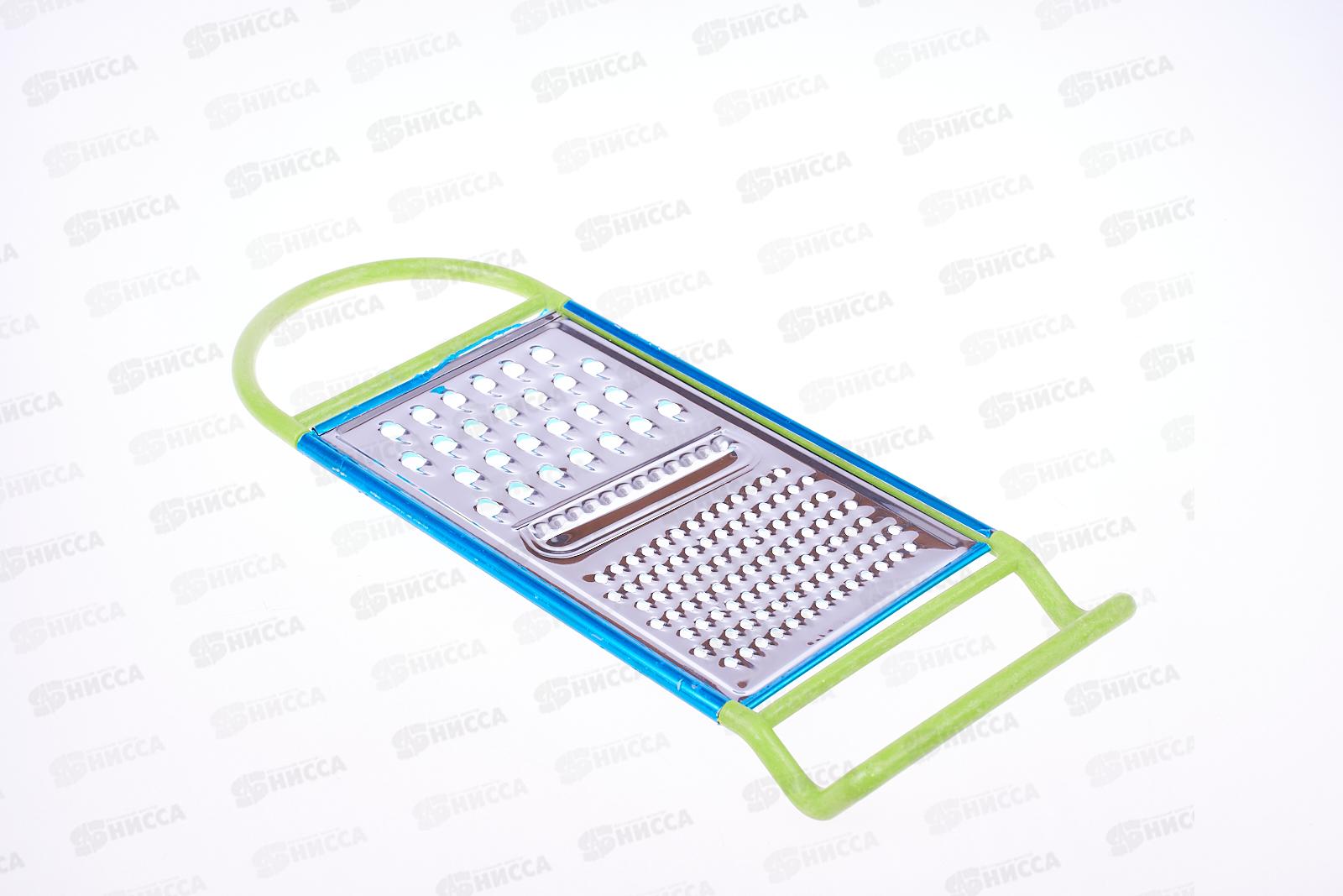 Терка предназначена для измельчения продуктов. Изделие имеет три режущие поверхности: крупная, средняя терки и шинковка. Материалы изготовления: пищевой пластик PP, нержавеющая сталь 410. Размеры изделия: 28х11,5х1 см