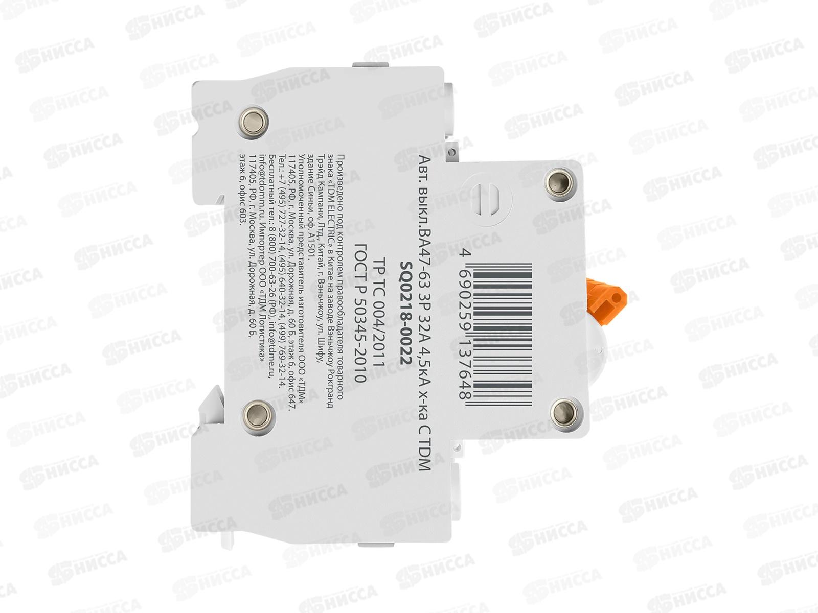 Автоматический выключатель ВА47-63 3P 32А 4,5кА C TDM *4/40