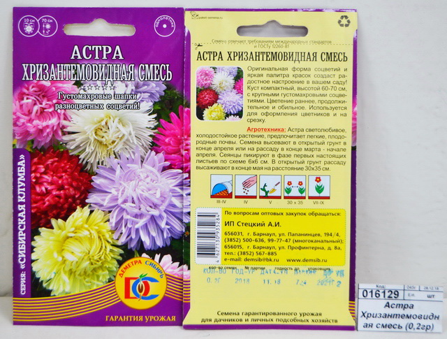 Изумительная, декоративная смесь обильноцветущих густомахровых астр раннего и среднего срока цветения. Куст компактный, высотой до 60 см, с многочисленными до 10 цветоносов, густомахровыми соцветиями, диаметром до 15 см, похожими на хризантемы, насыщенных цветов. Цветение обильное и продолжительное. Используется для оформления цветников, рабаток и срезки.