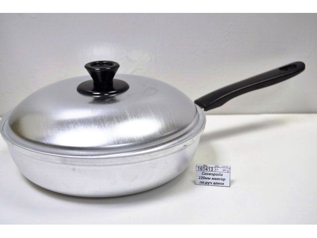 Сковорода изготовлена из пищевого алюминия, проста в уходе и имеет небольшой вес, быстро и равномерно нагревается. Ее преимуществом является ее высокая устойчивости к царапинам и возможность использования металлического кухонного инвентаря и аксессуаров. С крышкой. Сковорода идеально подходит для использования на электрических, газовых и стеклокерамических плитах. Можно мыть в посудомоечной машине.