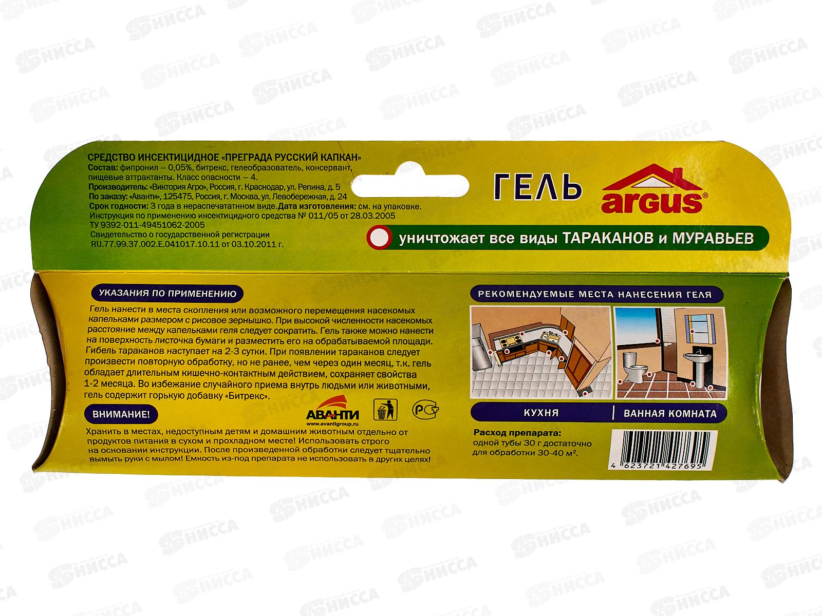 Гель от тараканов и муравьев от Argus - это надежное и эффективное инсектицидное средство, для уничтожения всех видов тараканов и муравьев. Гель нанести в места скопления или возможного перемещения насекомых капельками размером с рисовое зернышко. При выс