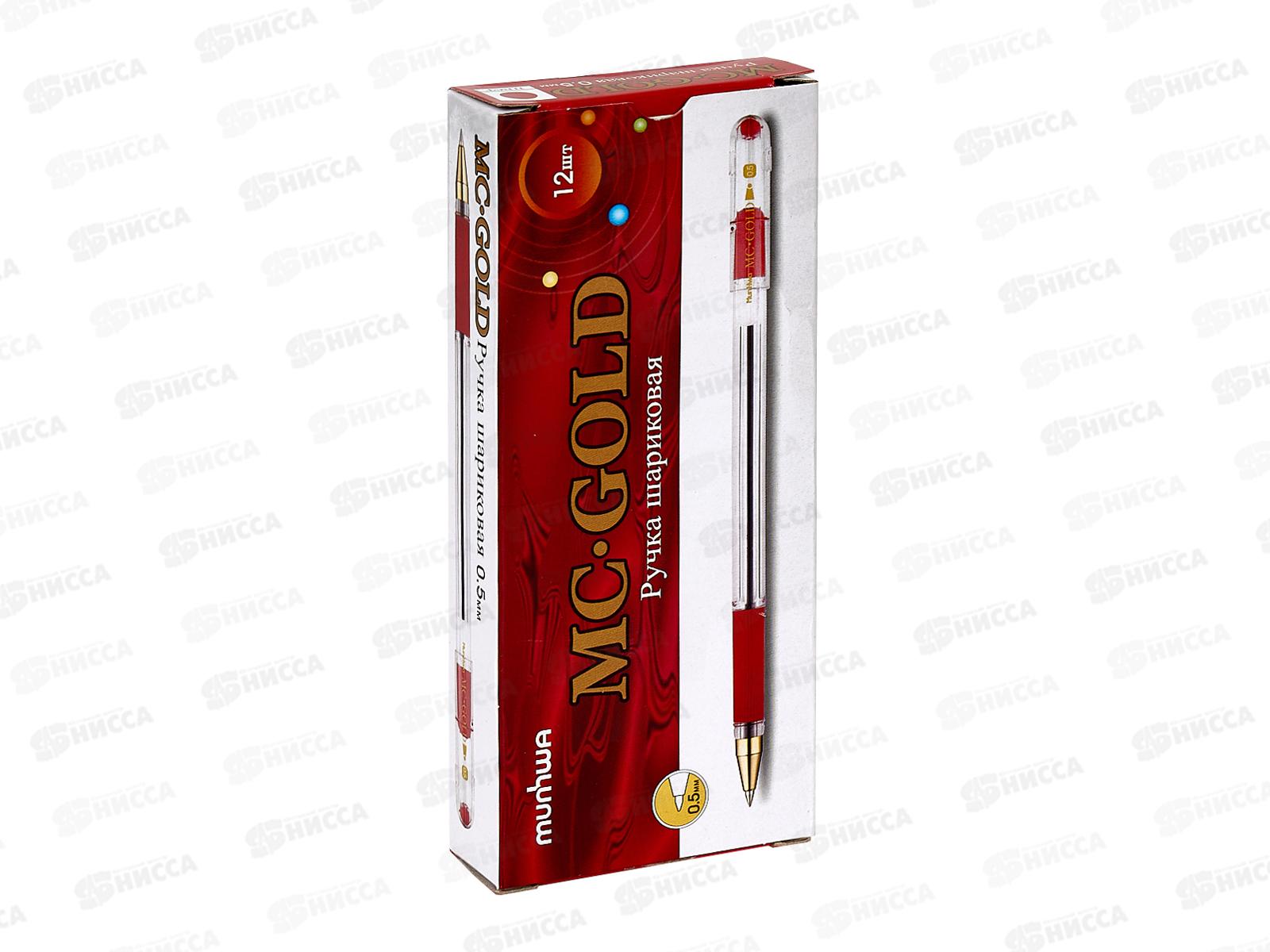 Легендарная шариковая ручка MunHwa "MC Gold" - одна из самых узнаваемых шариковых ручек. Сочетание комфортного тонкого письма и безупречного стильного дизайна сделало ее абсолютным лидером российского рынка. До мельчайших деталей проработанный корпус: золотой наконечник в сочетании с шестигранным прозрачным корпусом и ребристым мягким противоскользящим резиновым грипом для пальцев в цвет чернил. Уникальные чернила на масляной основе обеспечивают мягкое ровное письмо и уверенное скольжение по бумаге. Рука не устает даже при длительном письме. Тонкий шарик гарантирует качественную и тонкую линию письма. Длина линии письма более 1 200 метров. Цвет чернил - красный, диаметр пишущего узла - 0,5 мм. MC Gold - идеальная ручка для тонкого письма.