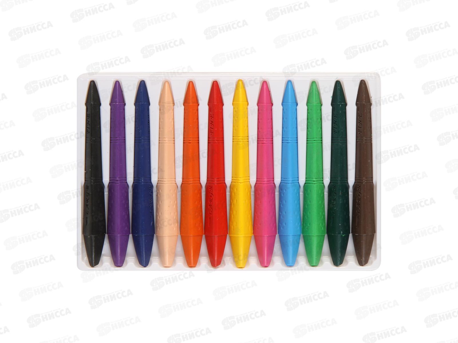 Восковые двусторонние карандаши Каляка - Маляка 12 цветов, КПКМ12. Карандаши изготовлены из специального материала, по составу близкого к пластику, а по функционалу - к воску. Они пишут мягко и ярко, не имеют запаха, не пачкают руки. Трехгранная форма позволяет правильно взять карандаш, приучая ребенка правильно держать письменные принадлежности. Одним карандашом можно рисовать тонкие и толстые линии. Прекрасно ложатся на бумагу, картон, дерево.