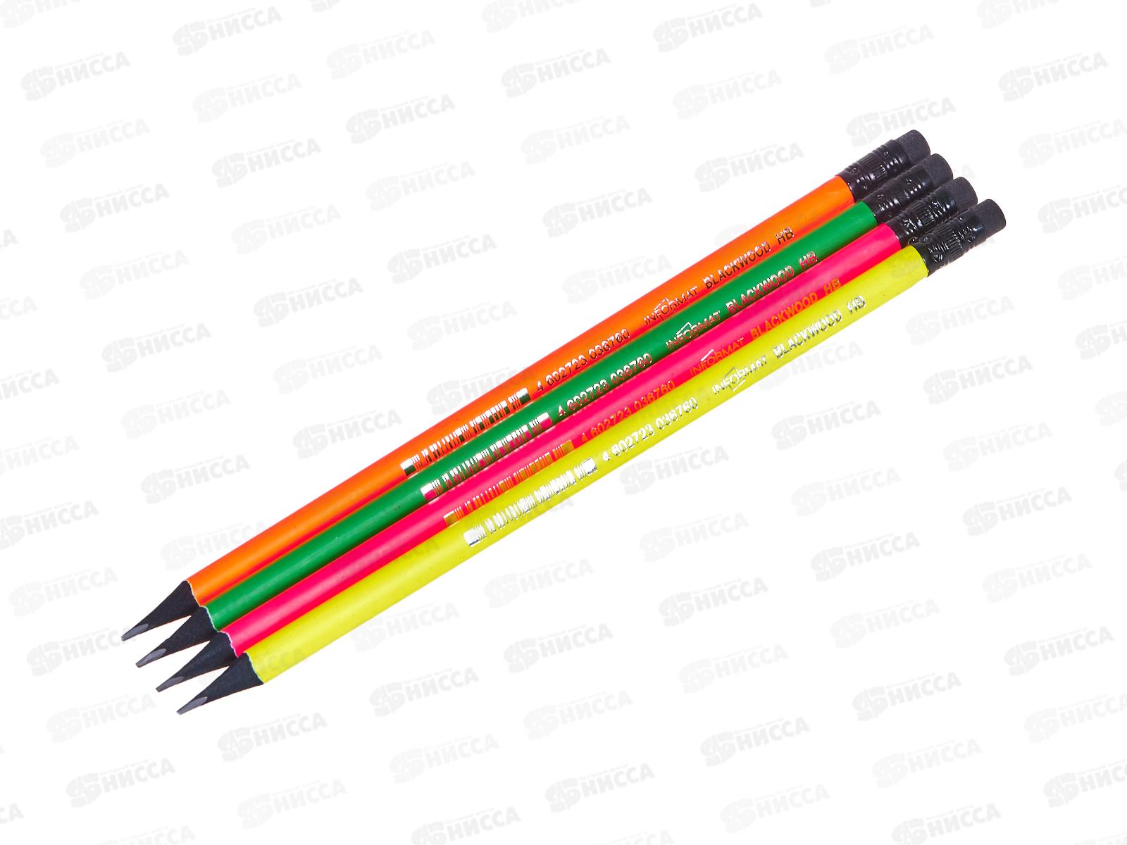 Карандаш чернографитный с ластиком inФОРМАТ Blackwood HB черный держатель ,неон PTNBWT *48/576
