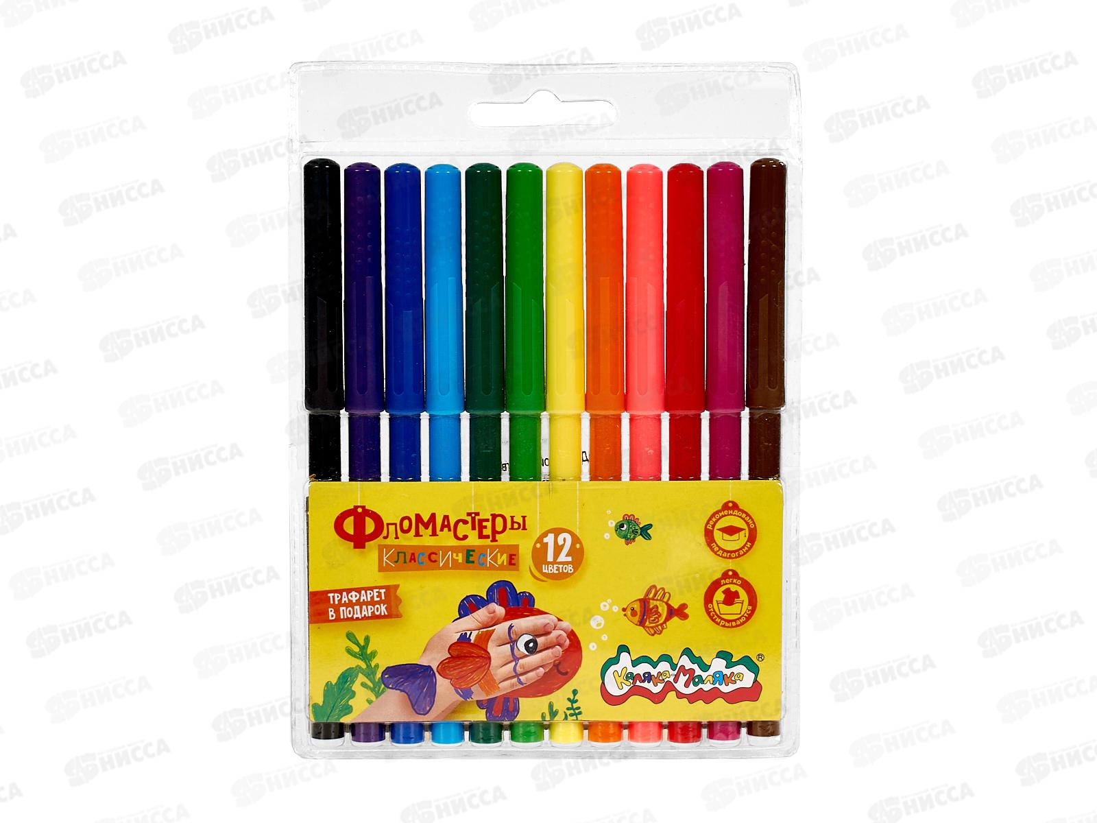Фломастеры Каляка - Маляка одни из самых ярких, долговечных и безопасных фломастеров на рынке. Разработаны для детей в возрасте от 3 лет. Богатая палитра ярких сочных цветов позволит детям воплотить любую фантазию в рисунок. Выпускаются в удобном пластиковом блистере с европодвесом. Толщина фломастера 9,3 мм. Диаметр пишущего наконечника 2 мм. В наборе 12 ярких, сочных цветов. Богатая палитра оттенков. Фломастеры Каляка - Маляка соответствуют самым высоким мировым стандартам качества и безопасности! Полипропиленовый корпус обладает повышенной устойчивостью к излому, не образует острых краев при повреждении. Безопасный вентилируемый колпачок обеспечит свободное прохождение воздуха при случайном попадании в дыхательные пути. Прочный пишущий узел не деформируется и не продавливается. Чернила на водной основе. Свежие следы фломастеров легко отстирываются с большинства тканей и смываются с кожи ребёнка!