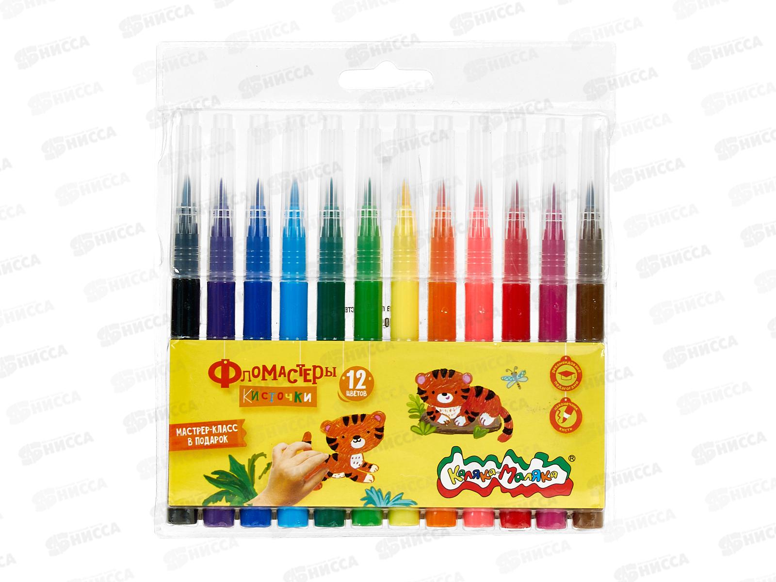 Фломастеры 12 цветов Каляка-Маляка, кисточки, блистер , ФККМ12 *12/192