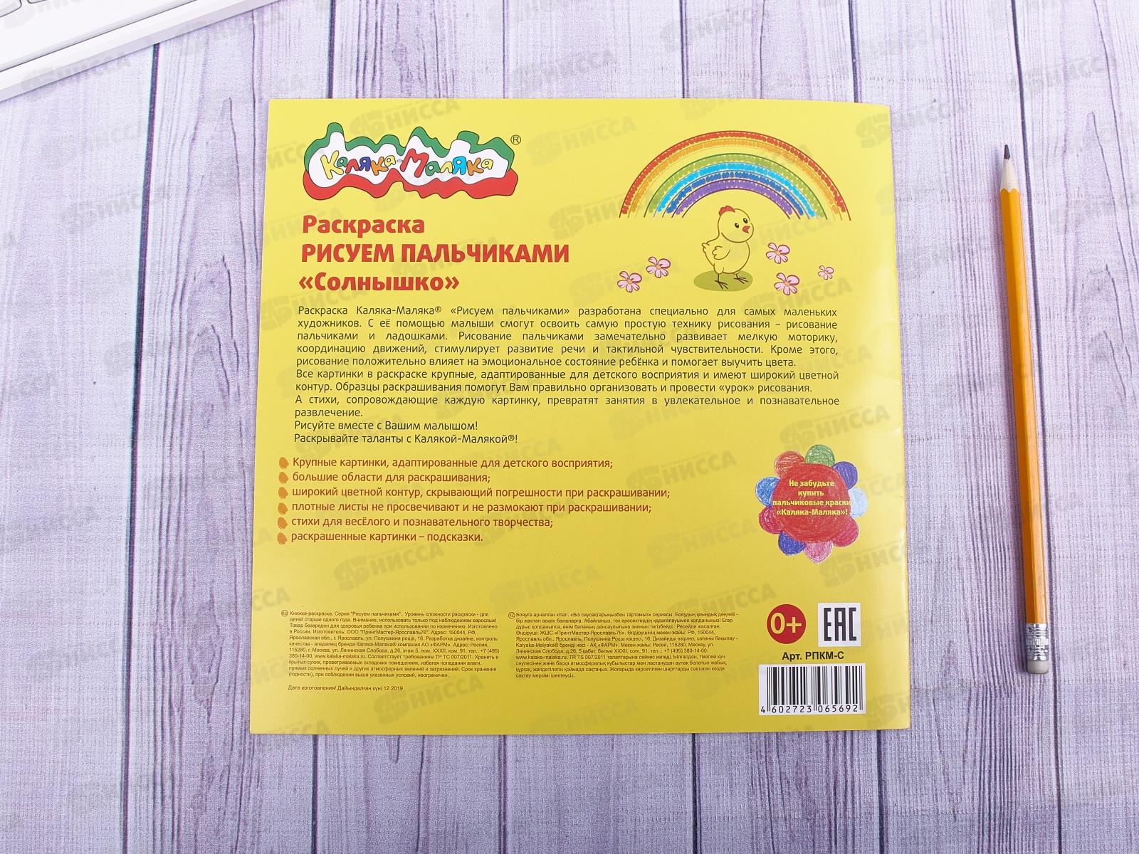 Раскраска Каляка-Маляка Рисуем пальчиками, Солнышко, РПКМ-С * 25