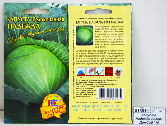 Популярный среднеспелый (135-140 дней) сорт. Кочан округлоплоский, плотный, с сильным восковым налетом, не растрескивается, массой 3-4 кг. Внутренняя кочерыга короткая. Вкус отличный. Рекомендуется для потребления в свежем виде, квашения, засолки и хранения до трех месяцев.