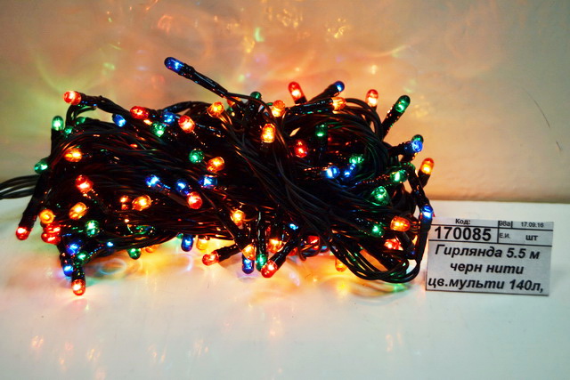 Гирлянда электрическая, новогодняя 5,5 м., 140 ламп, черный провод, разноцв., 220В, 50Гц, AL-8007-3-1 *100
