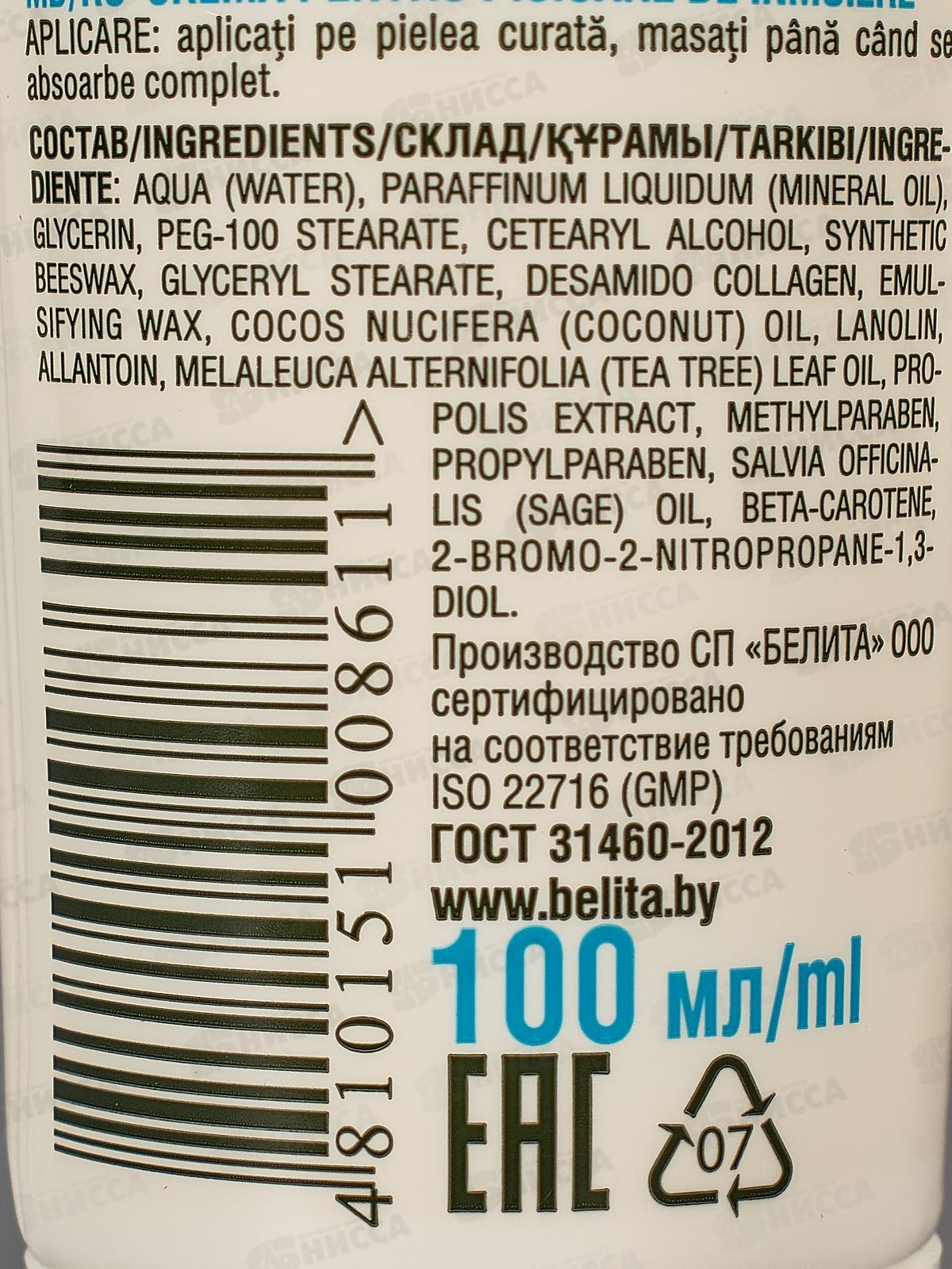 Крем основан на 10-ти активных компонентах. Предназначен для эффективного ежедневного ухода за кожей ног. Состав: Вода, масло вазелиновое, глицерин, ПЭГ-100 стеарат, цетеариловый спирт, воск пчелиный синтетический, глицерилстеарат, дезамидоколлаген, эмульсионный воск, масло Cocos Nucifera (кокоса), ланолин, аллантоин, масло листьев Melaleuca Alternifolia (чайного дерева), экстракт прополиса, метилпарабен, пропилпарабен, масло Salvia Officinalis (шалфея), бета-каротин, 2-бром-2-нитропропан-1,3-диол.