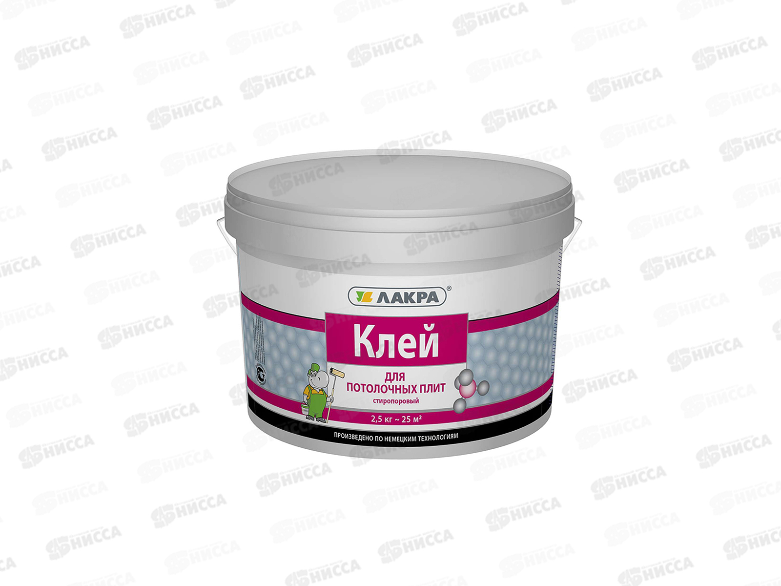 Высококачественный клей для потолочных плит Лакра на основе водной дисперсии модифицированного ПВА. Обладает оптимальным временем схватывания. При приклеивании дает возможность корректировки положения панелей. Область применения: Предназначен для приклеивания декоративных потолочных панелей. Типы повехностей: декоративные потолочные панели Подготовка поверхности: Поверхность предварительно очистить от старой отслаивающейся краски, меловой побелки, пыли и грязи. Клей хранят в плотно закрытой таре в сухих помещениях при температуре от 5°С до 35°С. Фасовка - 2,5 кг.