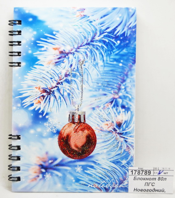 Блокнот 80листов ПГС Новогодний, 100*150, глиттер, на гребне *12