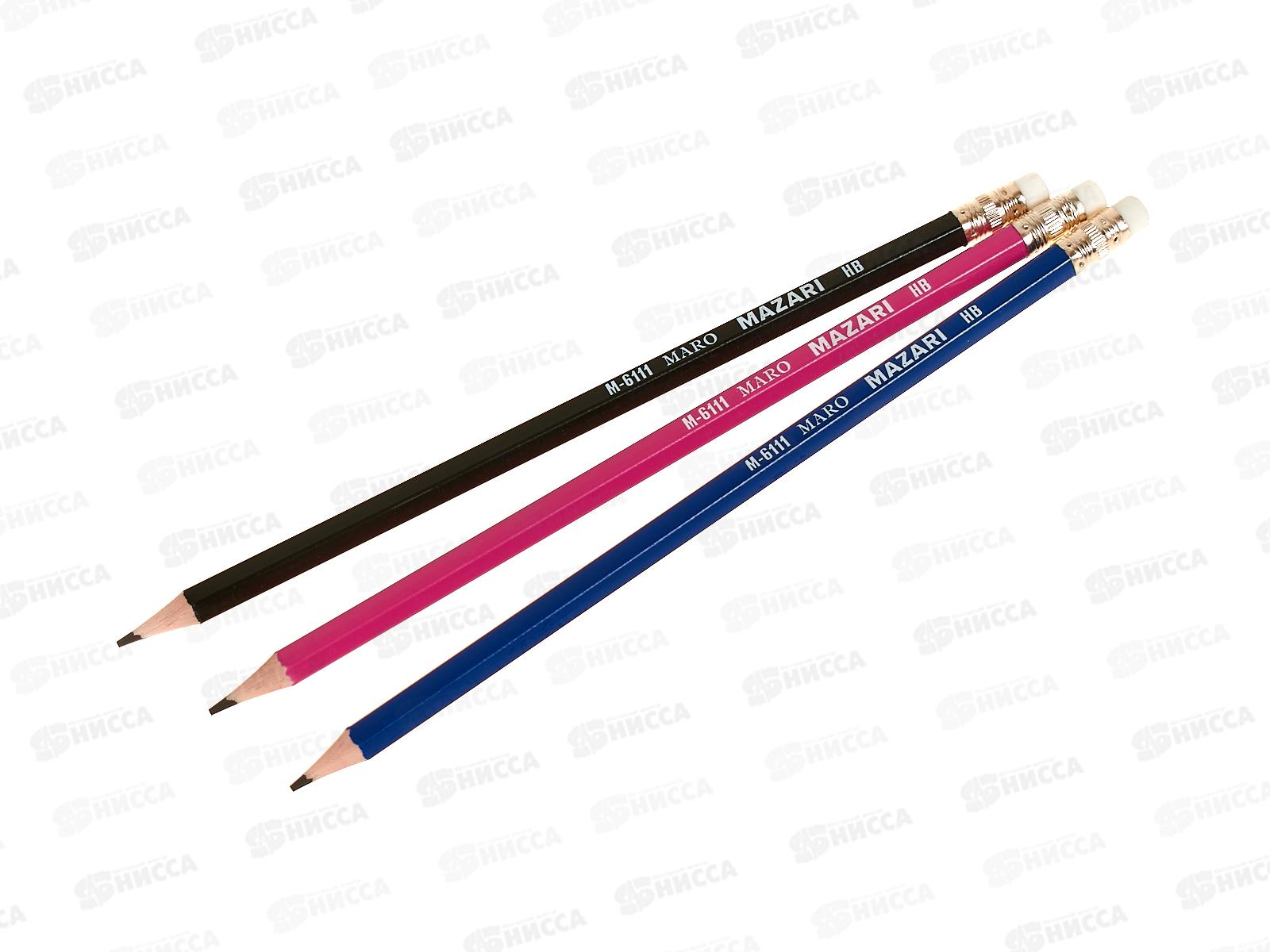 Карандаш чернографитный с ластиком MAZARI Maro, HB, пл., M-6111 *1/72/1152