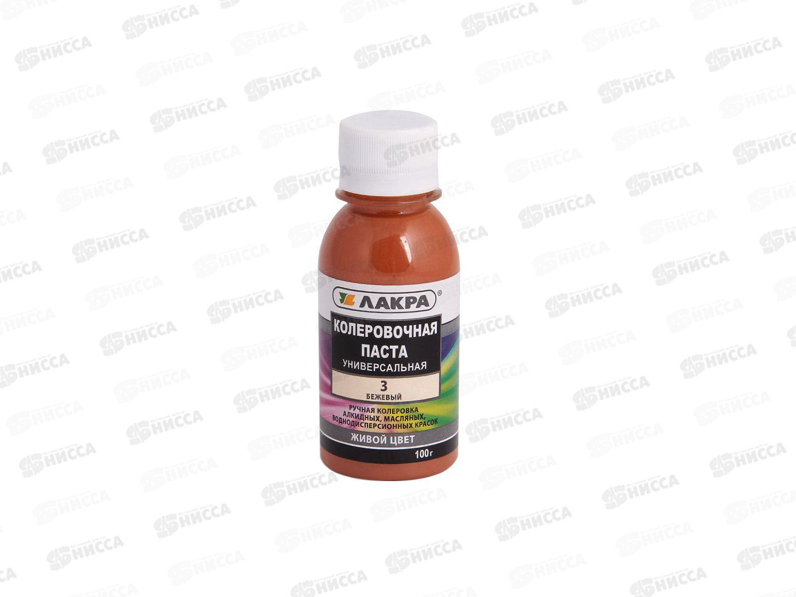 Колеры универсальные Лакра - живите ярко и насыщенно! Колер универсальный Лакра 3 бежевый применяется для ручной колеровки алкидных, масляных, воднодисперсионных красок и составов. Самостоятельного применения не имеет. Не использовать в чистом виде и не разбавлять водой или растворителями. Оттенок заколерованной краски может меняться в зависимости от типа и качества используемой краски (эмаль, масляная краска, водно-дисперсионная краска). Перед применением хорошо встряхнуть. Ввести небольшое количество колера в часть краски, тщательно перемешать. Полученную смесь разбавить белой краской до желаемого оттенка. Максимальное содержание колера в краске не должно превышать 10%. Поверхность должна быть сухой и чистой, температура воздуха должна быть не менее 10°С, а относительная влажность воздуха ниже 80%.