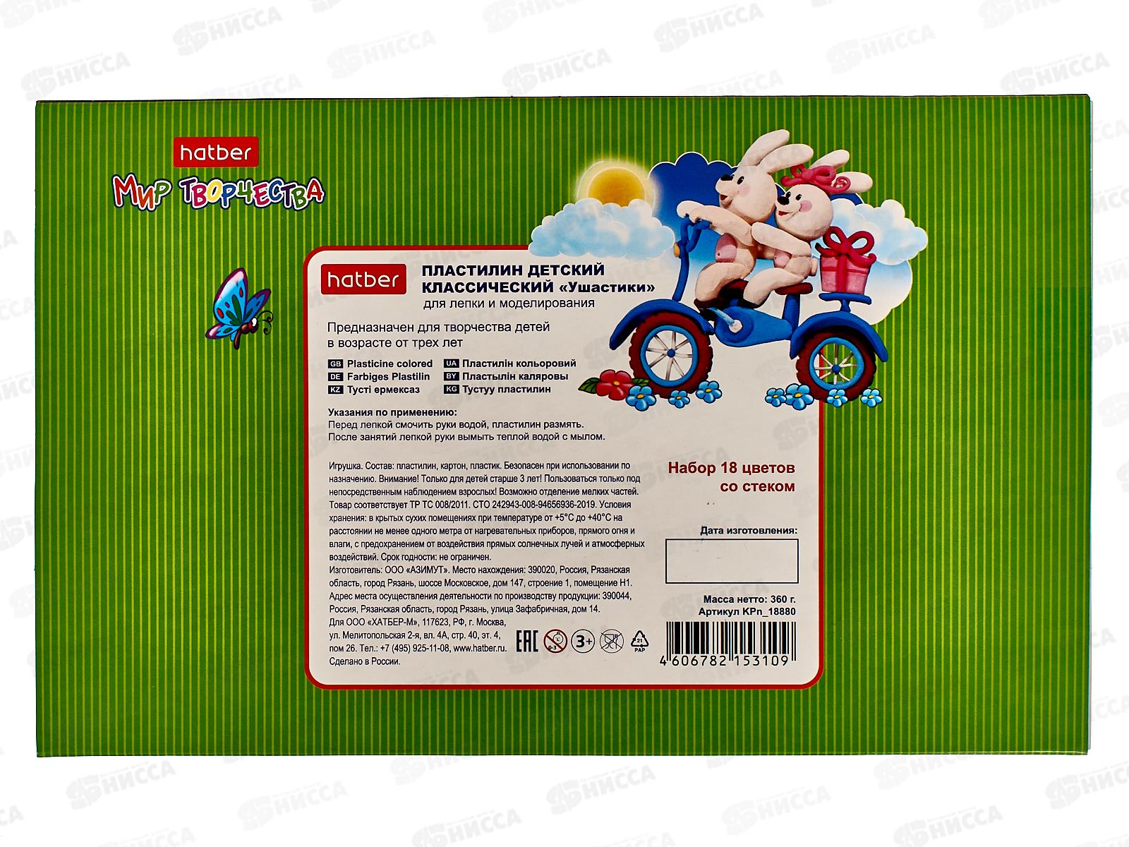 Пластилин 18 цветов 360 грамм Hatber Ушастики, со стеком, 18880 *10
