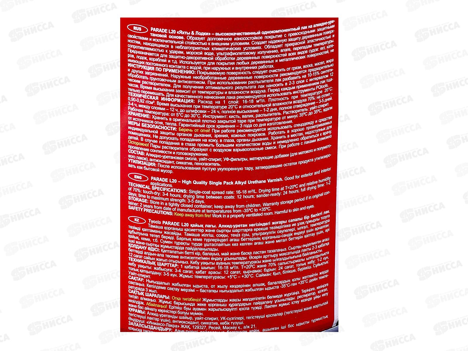 ЛАК яхтный алкидно-уретановый L20 PARADE глянец 2,5л*3 0231 ЛАКРА