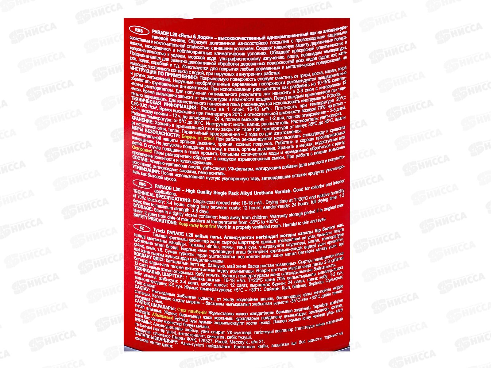 ЛАК яхтный алкидно-уретановый L20 PARADE матовый, 2.5л *3 0373