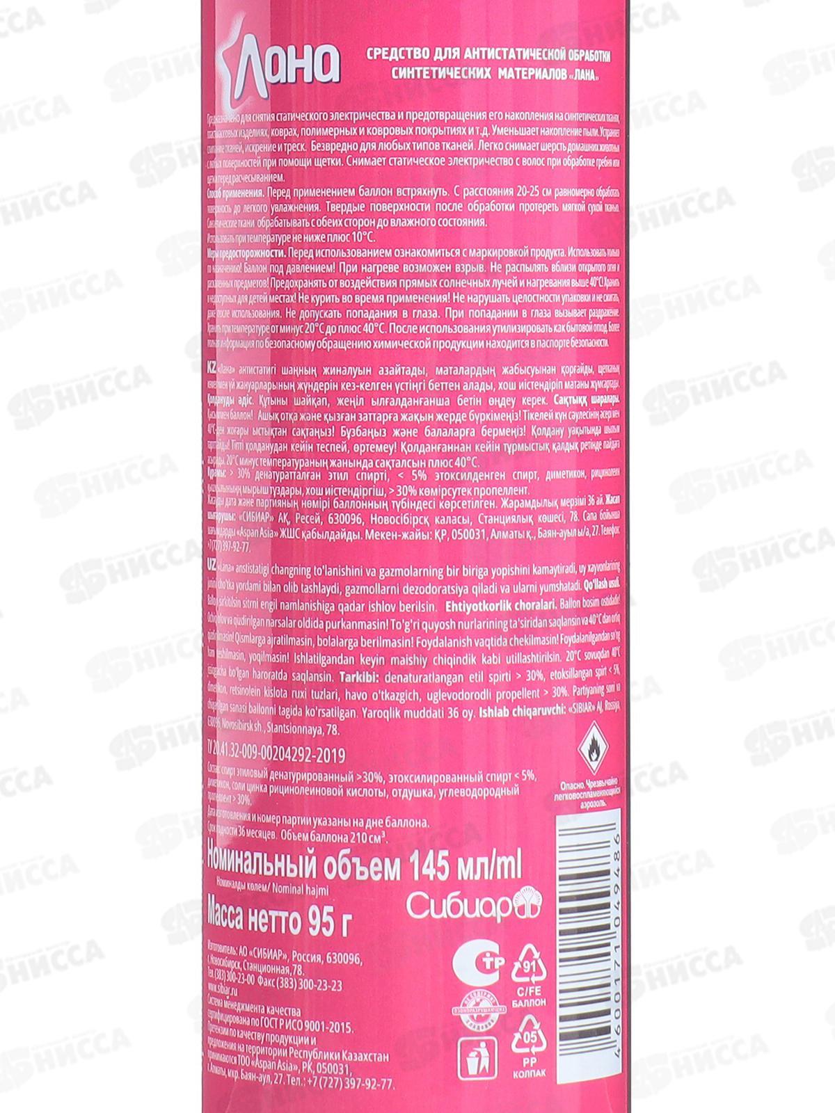 Средство для антистатической обработки синтетических материалов. Препятствует накоплению статического электричества на синтетических тканях, пластмассовых изделиях, ковровых и полимерных покрытиях.