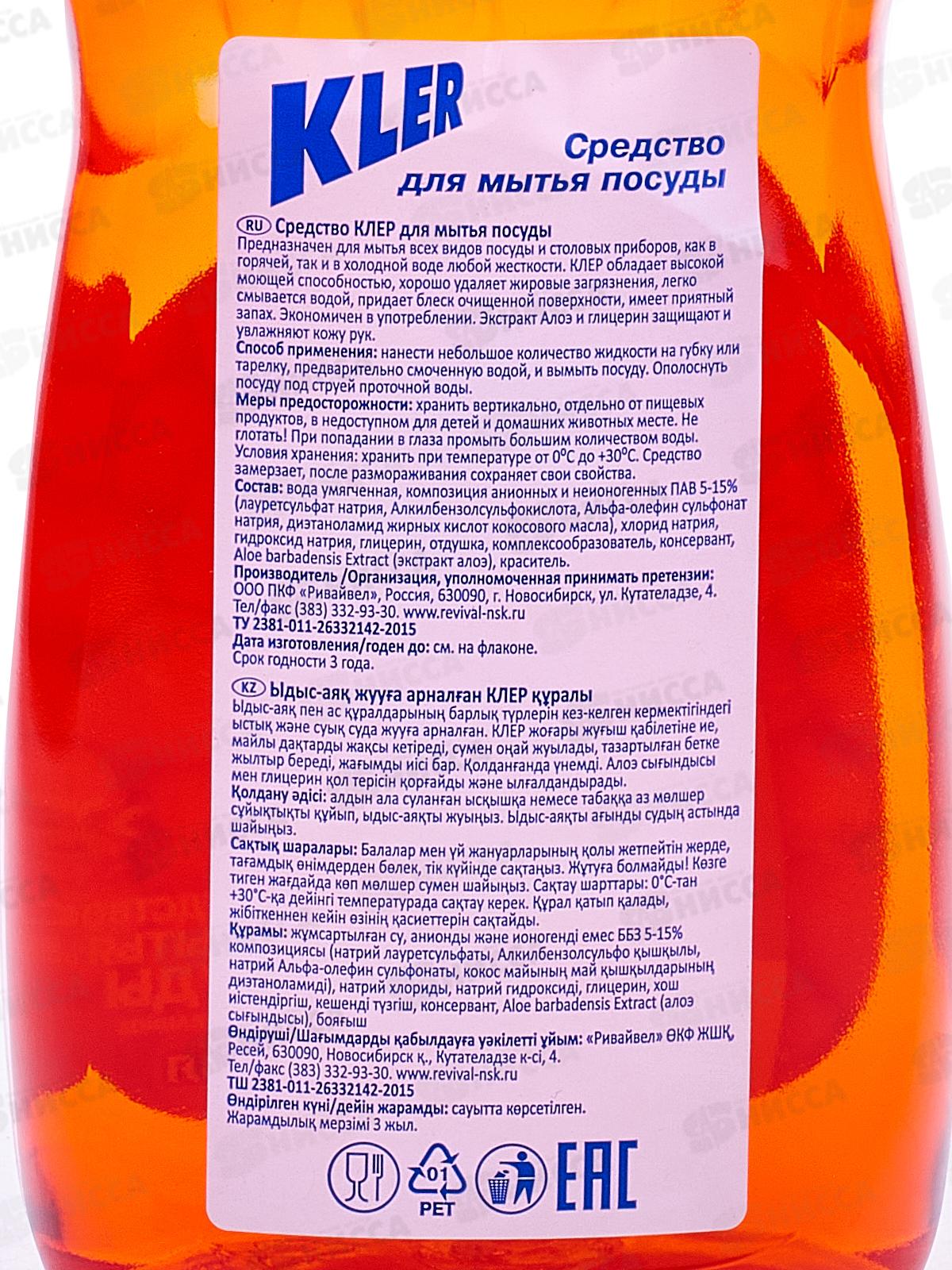 КЛЕР жидкость для посуды 500мл эконом Земляника *10