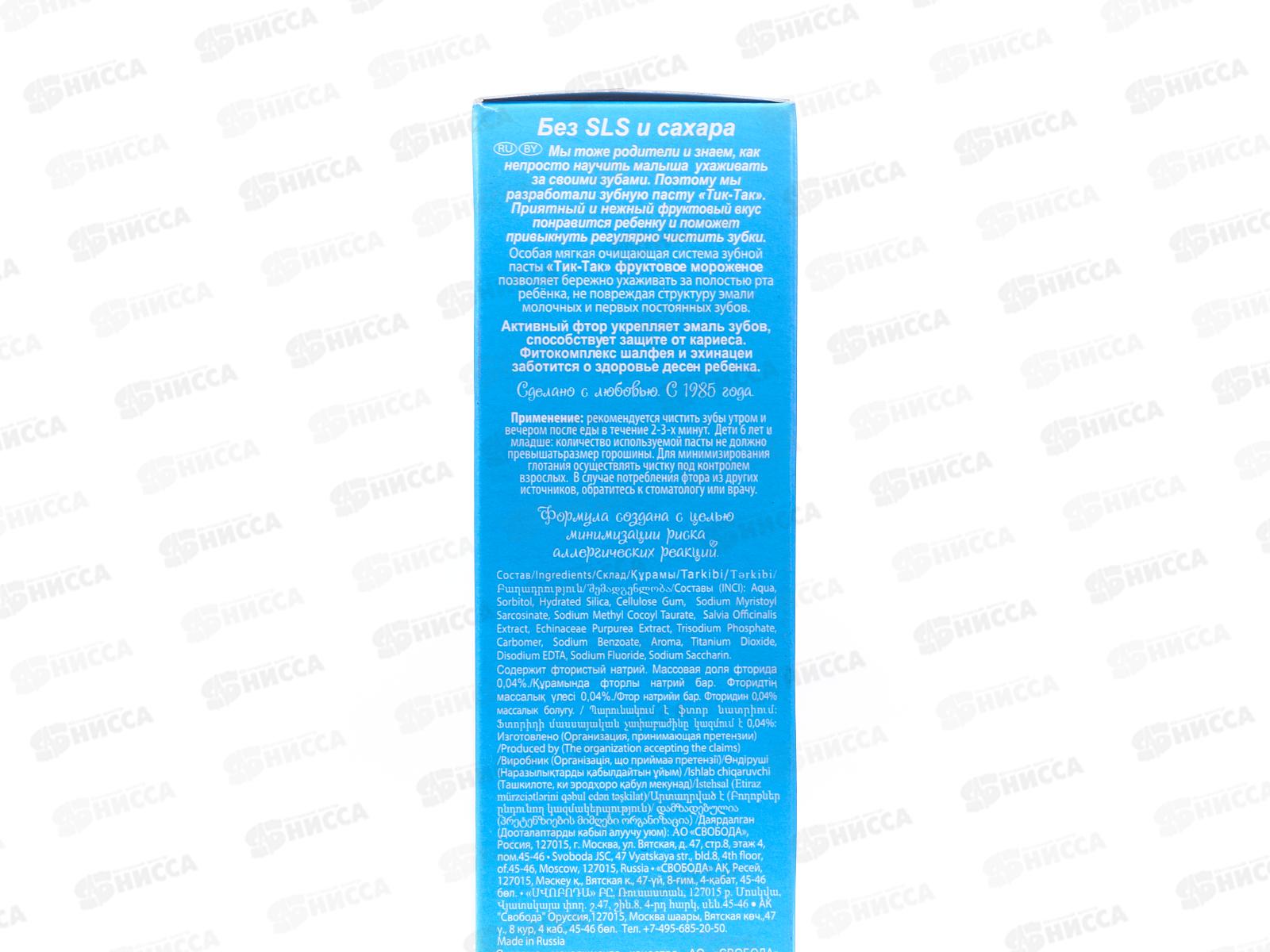 Свобода Тик-Так зубная паста Фруктовое мороженое 2+, 62г *24