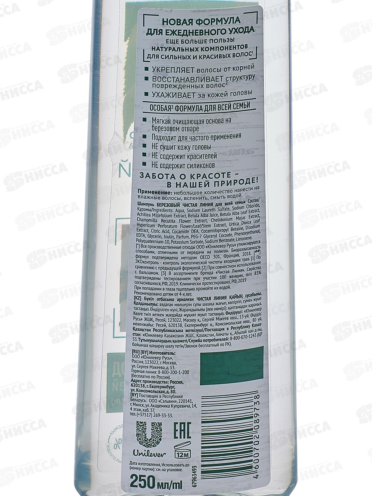 Концерн Калина Чистая Линия шампунь 250мл Березовый для всей семьи *6/12