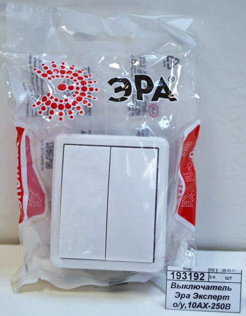 Выключатель Эра Эксперт открытой установки,10АХ-250В двойной., белый, 11-1204-01 *16