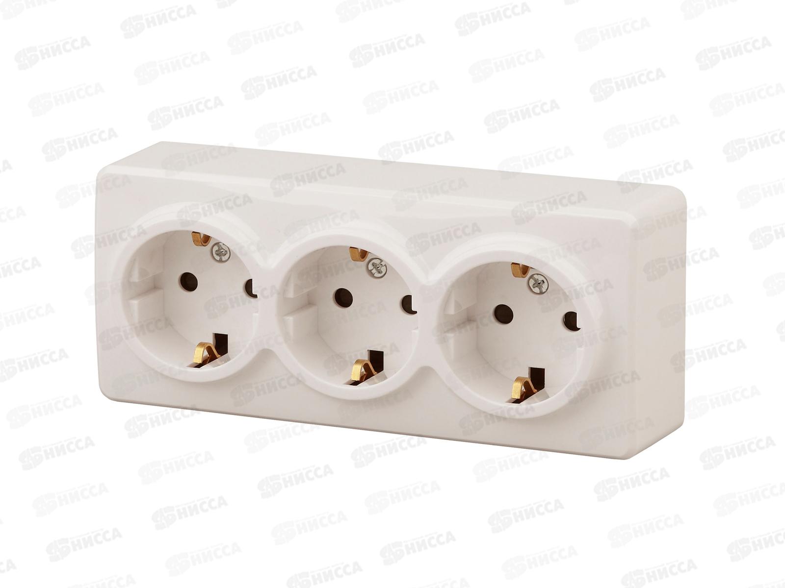 Розетка Эра открытой установки ,3*2P+Е Schuko со шторками,16А-250В белый, 11-2209-01 *6