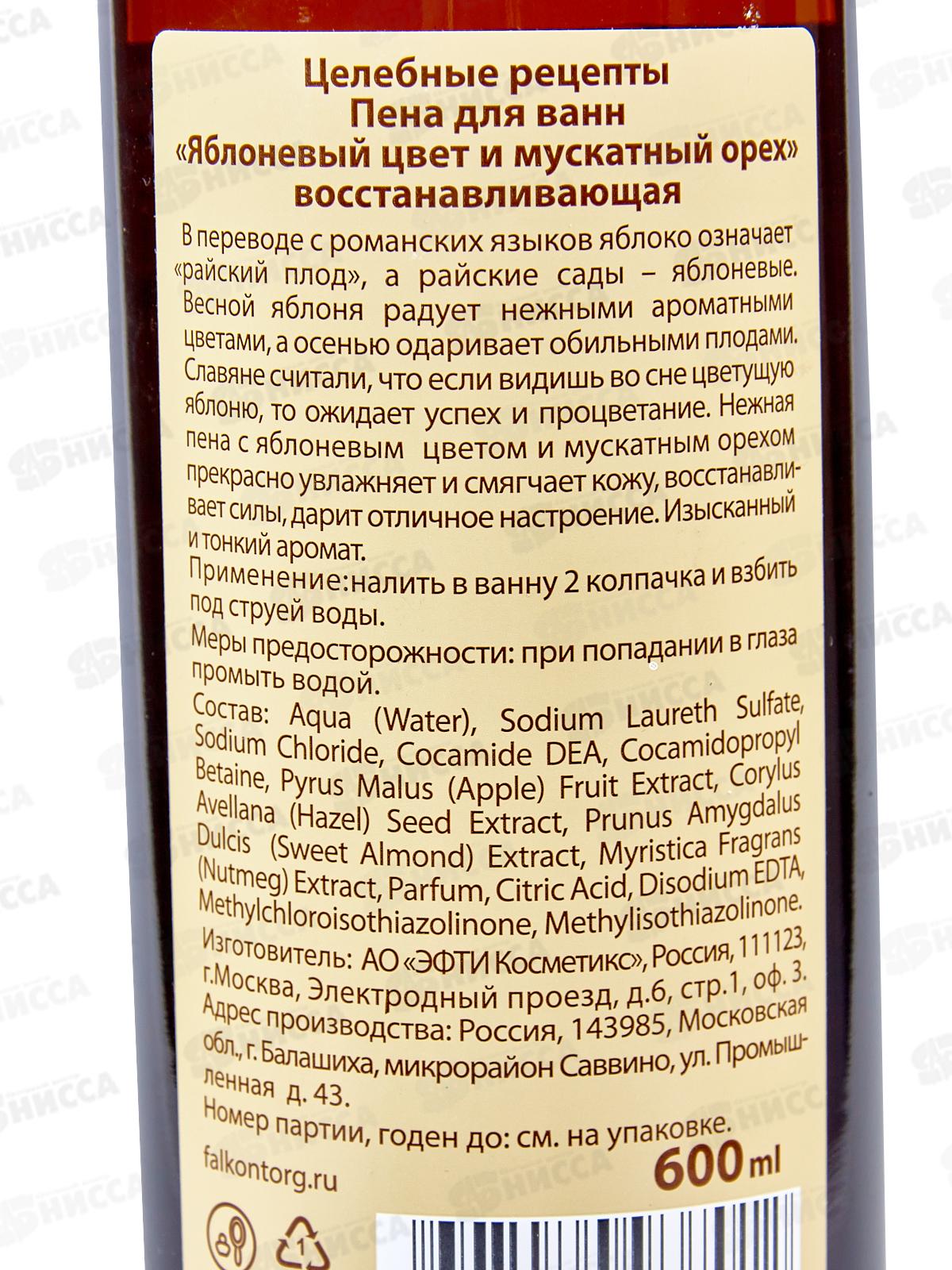 Целебные рецепты пена для ванн Восстанавливающая 600мл *12
