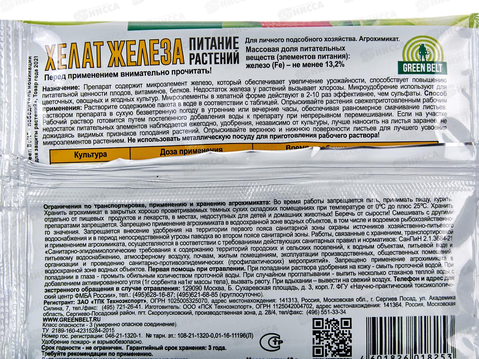 Хелат железа – микроудобрение с микроэлементами в хелатной форме. Применяется в качестве корневой и внекорневой подкормки для плодовых, овощных, ягодных и цветочных культур. Препарат способствует активному росту и развитию растений, содержит микроэлемент железо, который обеспечивает увеличение урожайности, содействует повышению питательной ценности плодов, витаминов, белков и предотвращает появление хлороза.