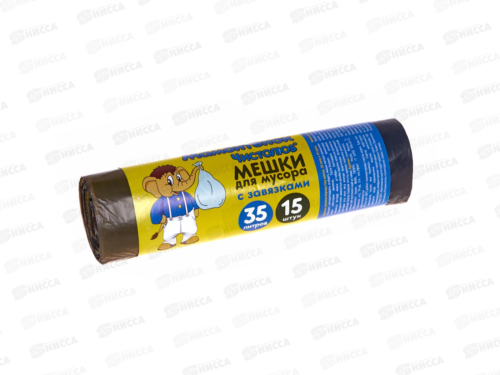 Мешки для мусора 35л 15шт с завязками Мамонтенок 12мкм МП *25