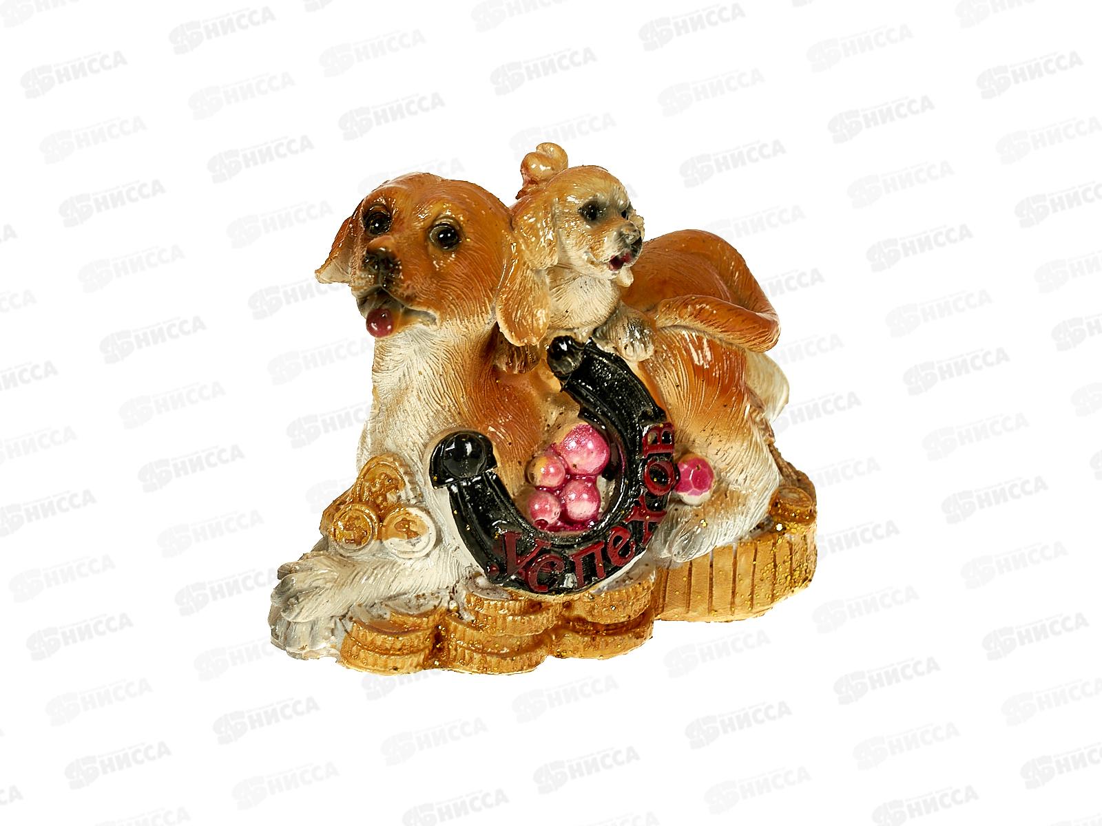 Сувенир СОБАКА СО ЩЕНКОМ ПОДКОВА НА МОНЕТЕ 6,5см 17264(046764) *1/4 Ж
